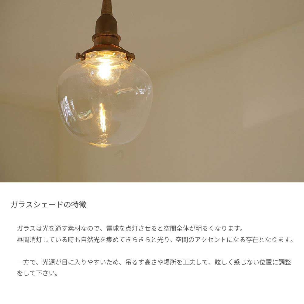 クリアガラスシェード ポム ペンダントライト 1灯 LED E17 おしゃれ 照明 クリアガラス かわいい シンプル 北欧 ナチュラル レトロ 灯具セット 天井照明