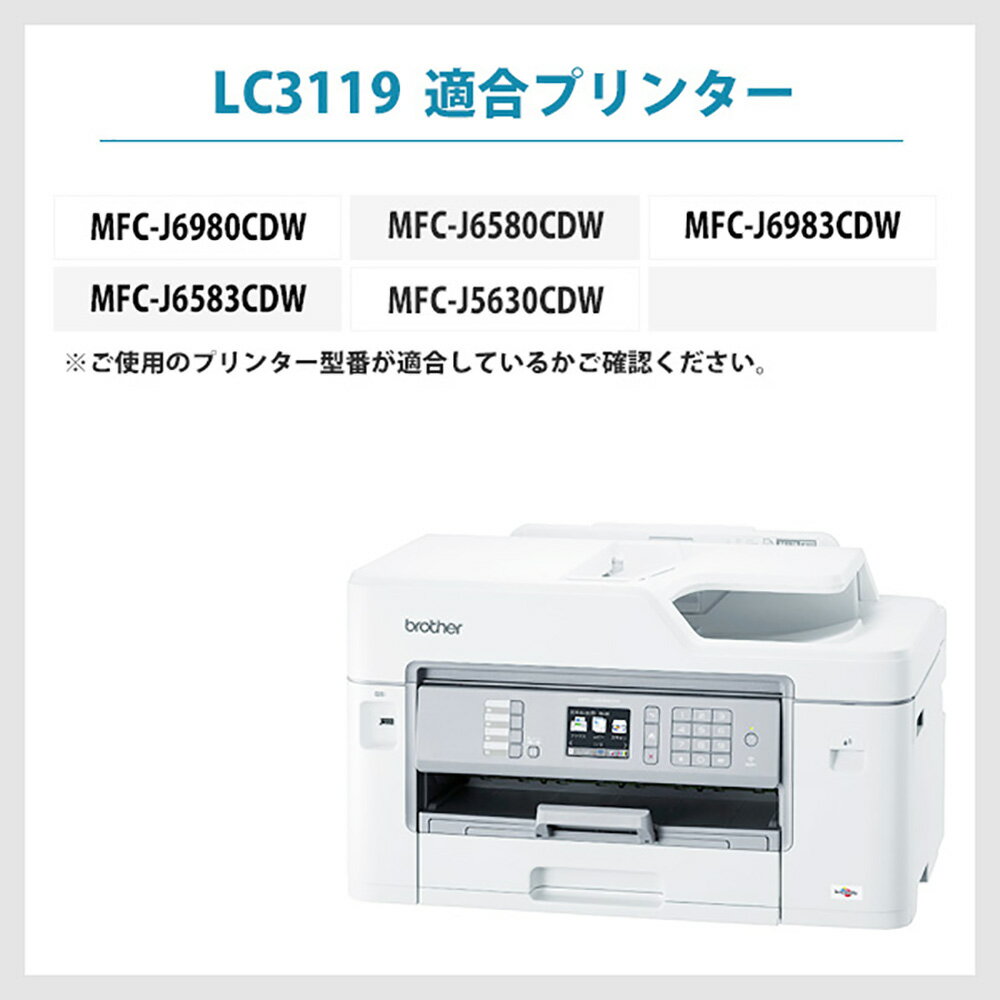 ブラザー(brother)LC3119シリーズ【LC3119-4PK / LC3119BK / LC3119C / LC3119M / LC3119Y】,LC3117シリーズ【LC3117BK / LC3117C / LC3117M / LC3117Y】と互換性のあるインクカートリッジです。