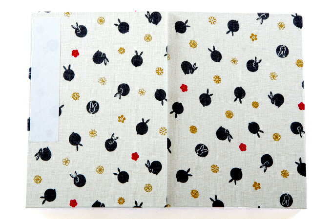 表紙は白地に、ウサギと花びらがプリントされた生地を使用。